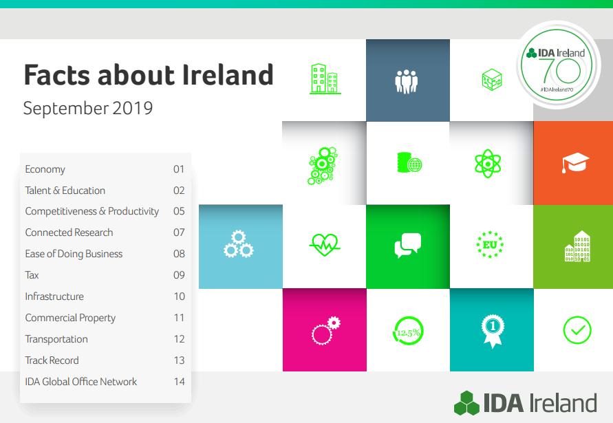 近日,愛爾蘭投資發展局(IDA)公布了2019年最新的Facts about Ireland。報告用清晰的數據,呈現了愛爾蘭在經濟、教育、全球競爭力、稅收等方面的全球排名和地位。