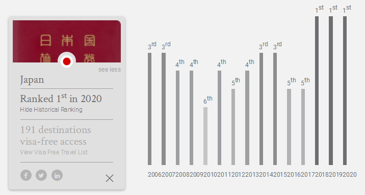 1月7日,2020亨氏護照指數(Henley Passport Index 2020)正式發布。