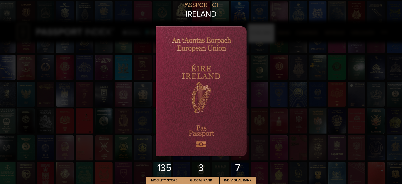 另據全球知名的諾曼護照指數(Nomad Passport Index)發布的2021年后新冠時代最佳公民護照排名,愛爾蘭護照更是高居全球第2