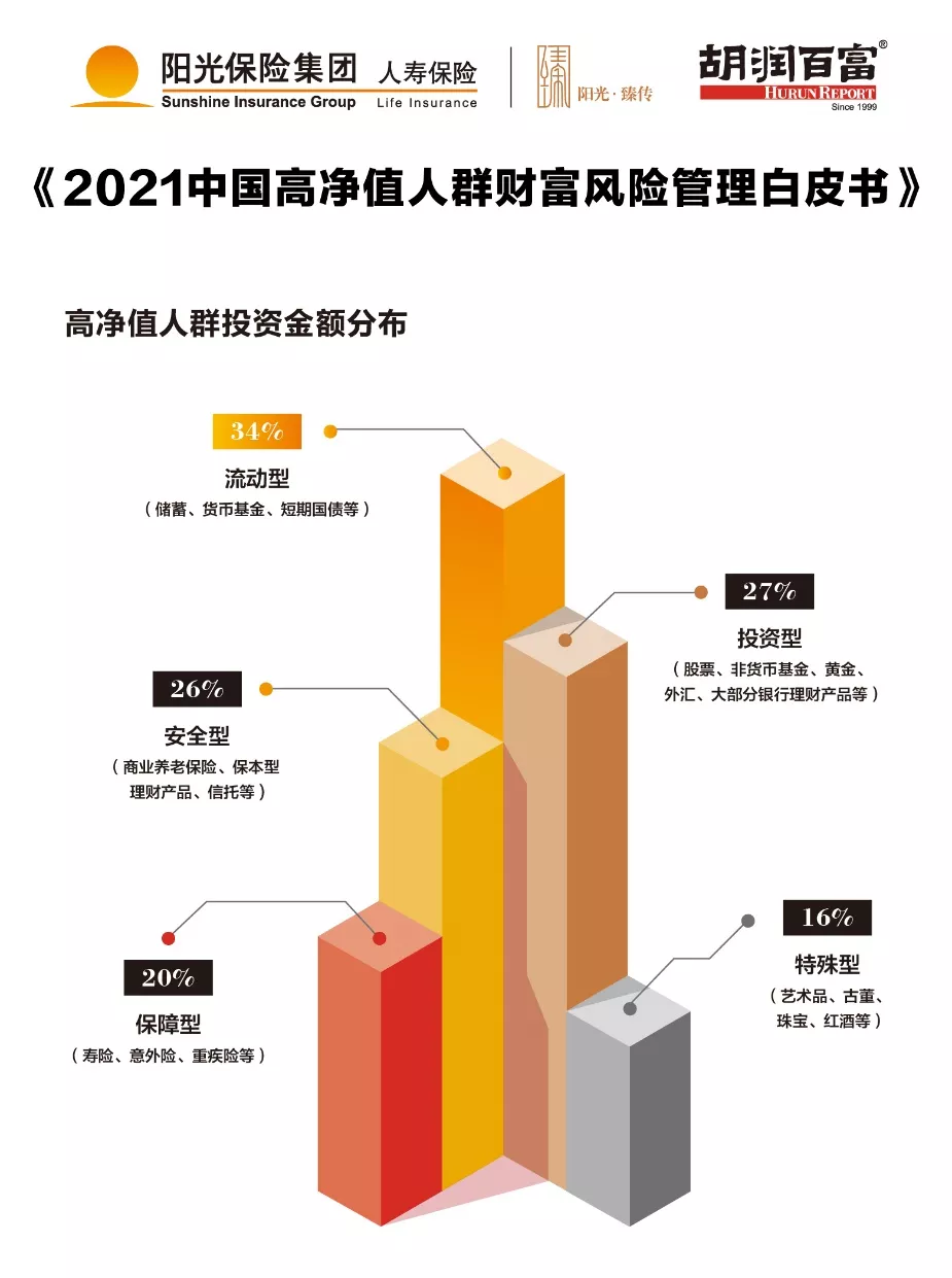 在家庭資產配置方面,37%的受訪者認為疫情使自己心態更保守,“求穩”是被普遍提及的追求。在高凈值家庭中,有34%的家庭資金用于流動型資金配置,僅有2%的受訪者自認是“激進型”投資者。
