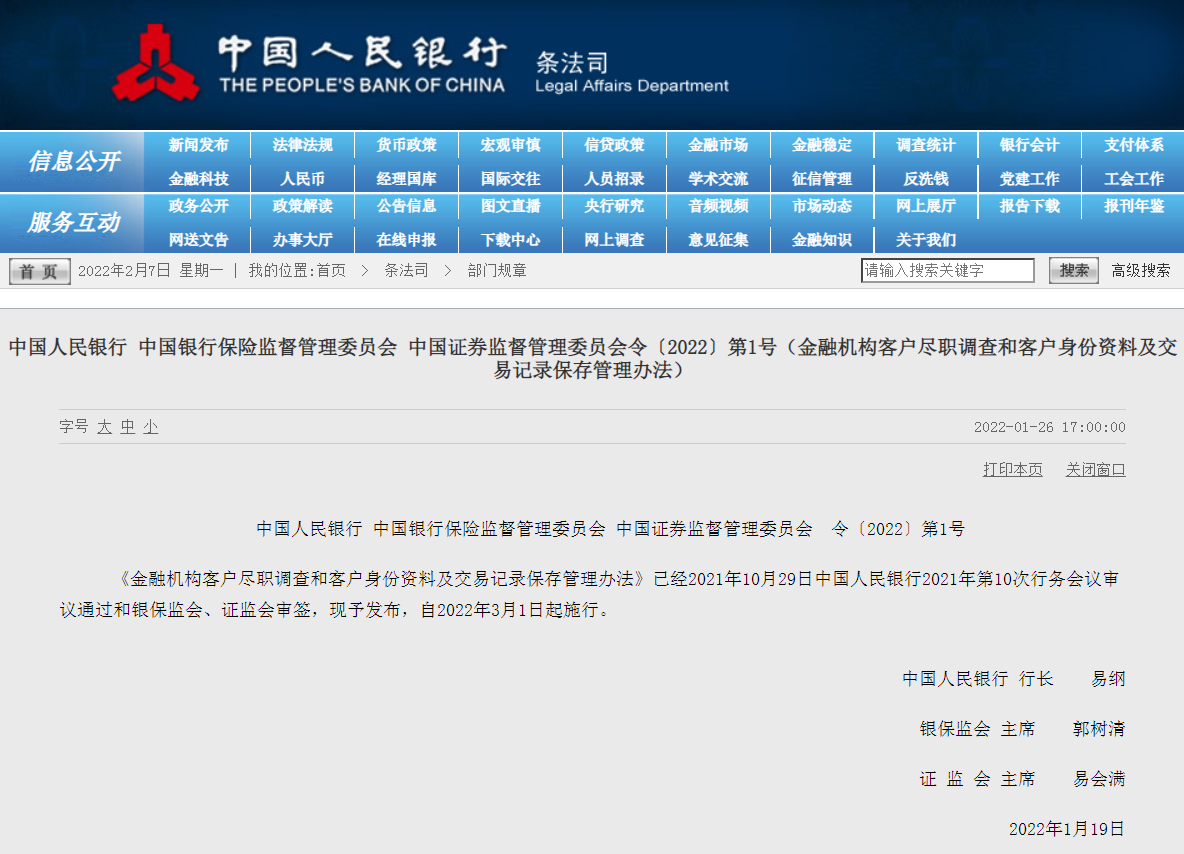 近日,中國人民銀行、中國銀行保險監(jiān)督管理委員會、中國證券監(jiān)督管理委員會三部門聯(lián)合印發(fā)《金融機構客戶盡職調查和客戶身份資料及交易記錄保存管理辦法》。《辦法》第十條提到,商業(yè)銀行、農村合作銀行、農村信用合作社、村鎮(zhèn)銀行等金融機構為自然人客戶辦理人民幣(專題)單筆5萬元以上或者外幣等值1萬美元以上現(xiàn)金存取業(yè)務的,應當識別并核實客戶身份,了解并登記資金的來源或者用途。