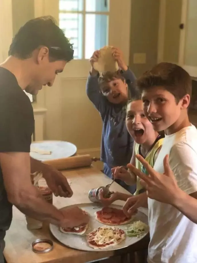 此外,老婆確診,保姆停工,特魯多更是隔離在家單挑三娃,給三個娃準(zhǔn)備日常飲食、分發(fā)玩具、陪同玩耍、洗澡……