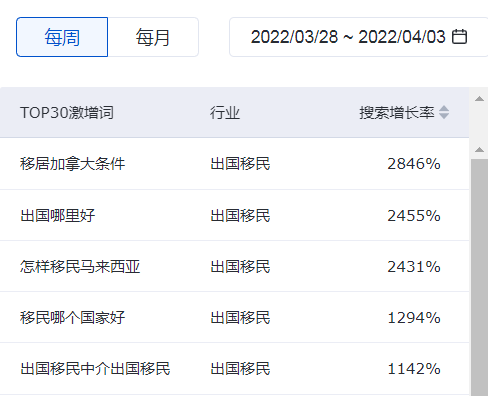 根據百度最新公布的周數據,【移居加拿大條件】詞條搜索暴增2846%【移民美國條件】詞條搜索暴增2259%