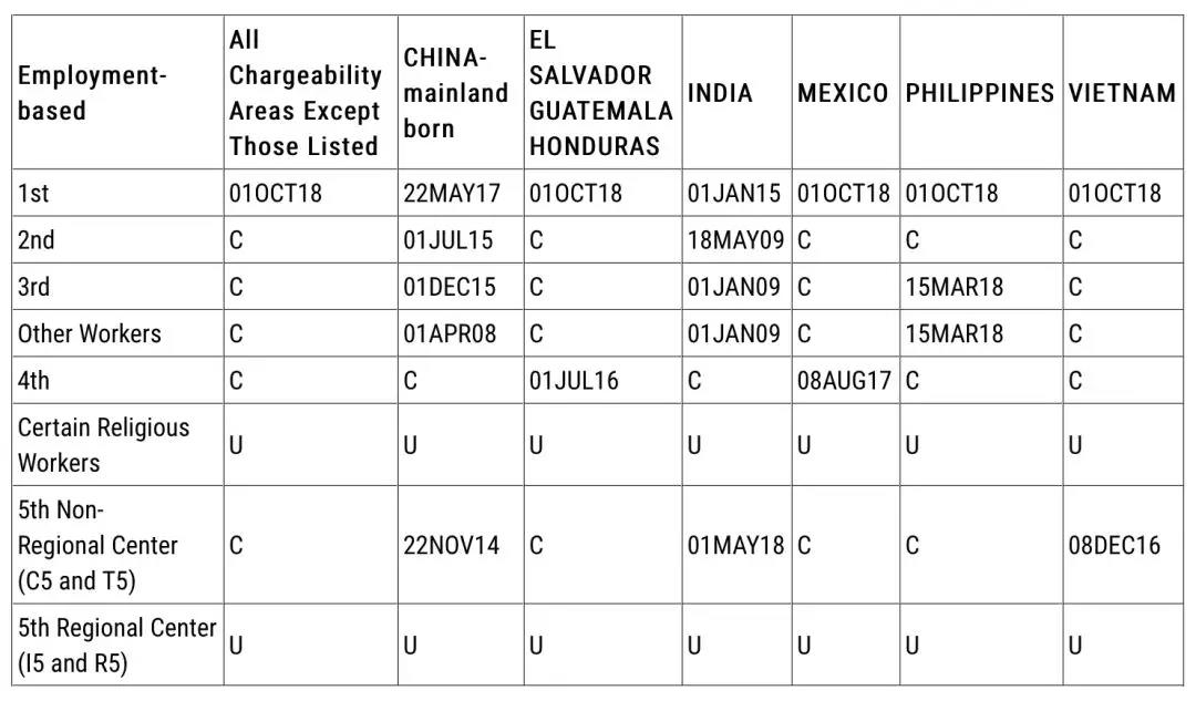 注:目前EB-5區域中心項目的簽證尚屬“U”,Unavailable。當前區域中心法案于12月20日到期,已經確定再次搭車聯邦預算案,延期至2020年9月30日。因此,區域中心項目簽證隨之恢復正常。