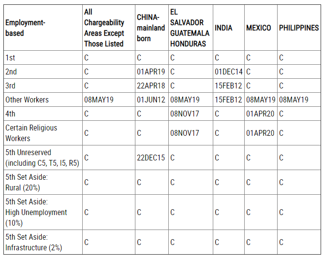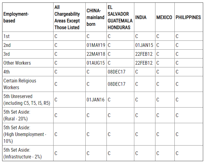 EB-5預留類別(農村項目、高失業率項目、基建項目):無排期。