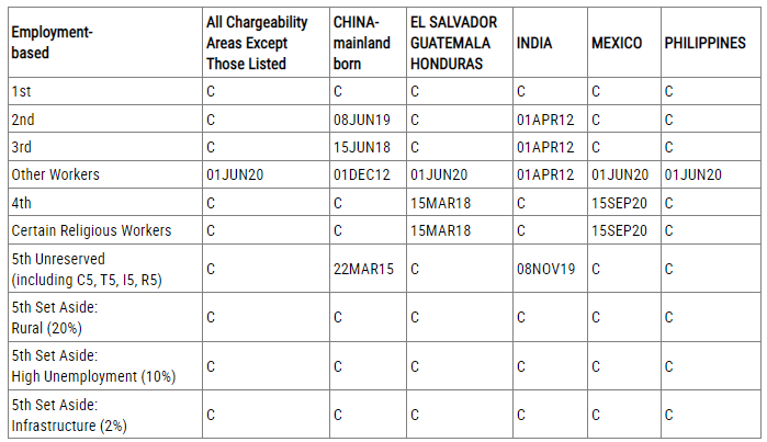 EB-2類別:排期為2019年7月8日,無變化