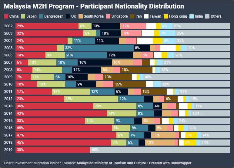 據(jù)馬來西亞旅游和文化部副秘書長透漏,去年中國大陸公民約占第二家園項目所有申請量的35%,此外,前10的申請人來源國/地區(qū)還包括韓國、香港、日本、孟加拉、英國、新加坡、美國、臺灣、印度,但沒有透漏各個國家/地區(qū)的具體數(shù)字。