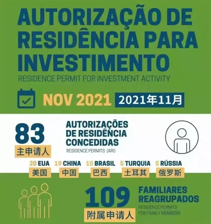 12月6日,葡萄牙移民局(SEF)發(fā)布了2021年11月黃金簽證最新數(shù)據(jù)!