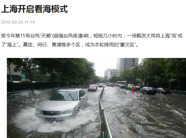 然而即使是全中國最先進的特大國際都市,排水系統也抵御不了一次特大暴雨。